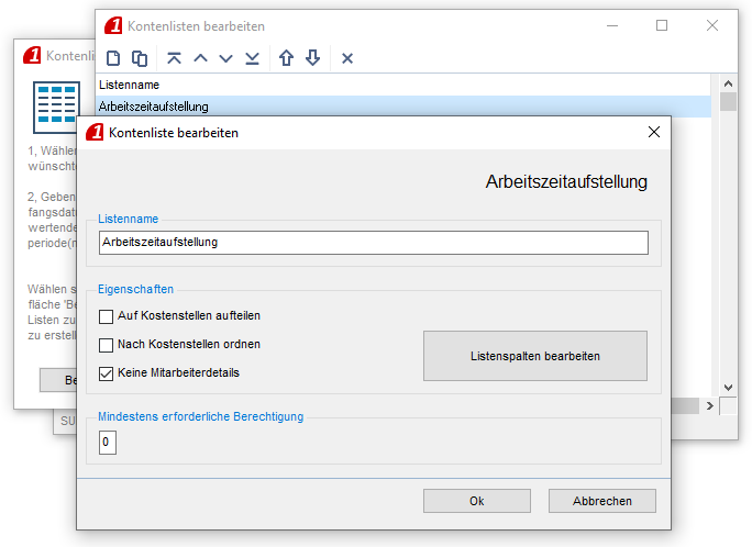 Es ist kein Eingriff in die Konfigurationsdaten und daher kein Administrator mehr notwendig. - Zusätzlich kann eine Berechtigung für das Drucken einer Liste eingestellt werden. Die Funktion "Kontenliste" stellt dann nur mehr Listen zur Verfügung, für welche ein Benutzer berechtigt ist. Listen können kopiert, verschoben und gelöscht werden.