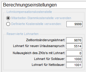 - Prüfen sie ob in den A:Z:L > Systemeinstellungen > Berechnungseinstellungen die Lohnarten für Solldauer (standard: 1000) und Nettodauer (standard: 1001) eingetragen sind.