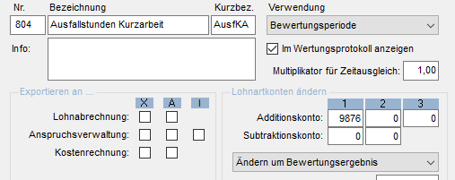 Sollte das Zeitkonto zu Beginn der Kurzarbeit noch Guthaben aufweisen oder im Abrechnungszeitraum vor Beginn der Kurzarbeit gutzuschreibende Überstunden anfallen, so müssen sie beide Werte von den auf die Lohnart 804 zu buchenden Ausfallstunden abziehen.