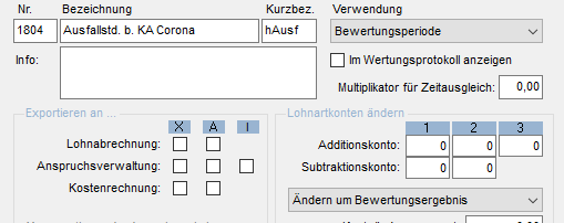 - Lohnart 1804 - Ausfallstunden bei KA des im Testlauf abgerechneten Zeitraums.